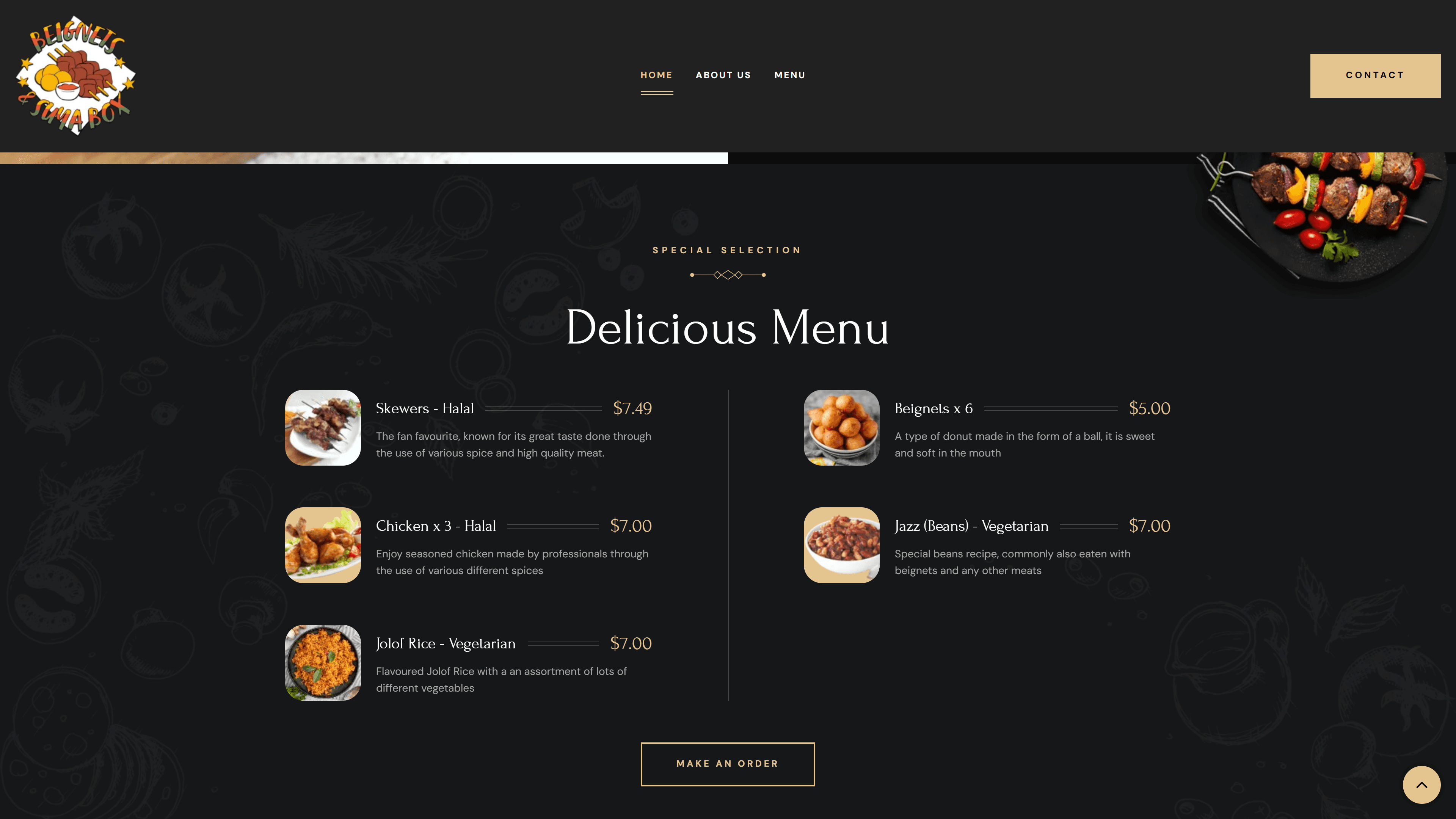 We elevated Beignets N Suya Box’s digital presence with a polished, modern website that highlights their signature dishes through rich visuals and a thoughtfully structured layout. The design delivers a seamless browsing experience, strengthens brand credibility, and guides visitors toward action. It features an ordering system which further enhances the platform, allowing customers to effortlessly build their cart and submit orders directly to the owner’s email for swift, reliable fulfilment.